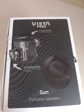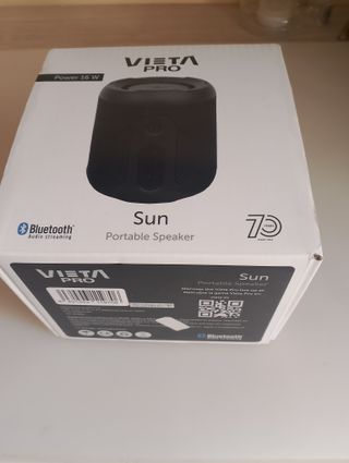 Altavoz portátil Vieta Pro Sun, ideal para llevar tu música a todas partes. Cuenta con una potencia de 16W y conexión Bluetooth para streaming de audio. Está en perfectas condiciones incluye todo.(Lo vendo porque tengo otro y este no lo uso) Nuevo cuesta 39,99€ Escucho ofertas - Potencia: 16 W - Conexión: Bluetooth - Tipo: Altavoz portátil