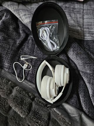 Auriculares usados 2 veces, están nuevos totalmente, sin desperfecto alguno. Sonido muy bueno, nítido y de calidad. Llevan su estuche original que es también el cargador, y el cable, todo completo según los recibí