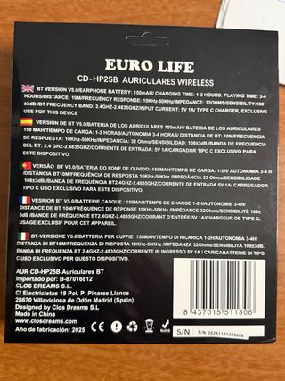 Auriculares inalámbricos EURO LIFE con tecnología Bluetooth 5.0. - Conexión inalámbrica. - Ideal para escuchar música. - Permite realizar llamadas. - Batería recargable.