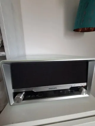 Reproductor de vinilos Philips con un diseño moderno. - Acabado enplata y negro - Controles frontales accesibles. Esta un poco amarillento, debido al tiempo,n se a usado casi nada,bluetooth,radio,usb. Vendo xq me han regalado otra funciona a la perfección.