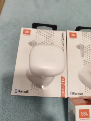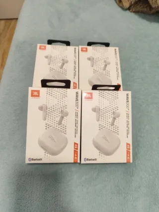Se venden cuatro pares de auriculares inalámbricos JBL Wave 300 TWS en color blanco funda de regalo - Diseño ergonómico para mayor comodidad. - Conexión Bluetooth. - Sonido JBL Deep Bass.
