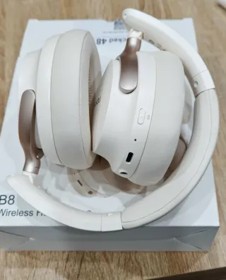 Auriculares inalámbricos Rorsou modelo B8. - Diseño elegante en color dorado y blanco. - Conexión Bluetooth para mayor libertad de movimiento.
