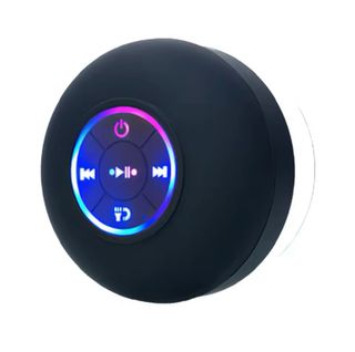 Altavoz redondo para la ducha con luces LED. - Conexión Bluetooth. - Teclas impermeables. - Ventosa de gran sujeción. - Luces RGB.