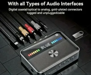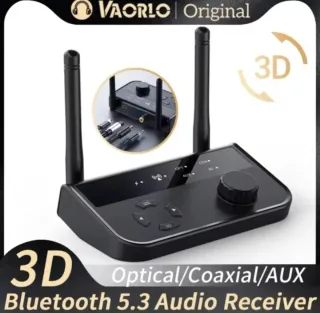 Receptor de Audio Bluetooth 5.3-2 en 1 VAORLO. Adaptador Inalámbrico de Audio Estéreo que permite envia audio Bluetooth. Puede Enviar Audio de 1 y 2 dispositivos a la vez. Por ejemplo 1 o 2 móvies a un equipo de música. Con conexiones Optico, Coaxia y ,Jack 3.5mm y USB Carga. USB Dongle. SOPORTE DE SONIDO DE ALTA CALIDAD HI/RES Se carga con el USB tipo C a USB Tipo A. Incluye: 1X Dispositivo Bluetooth 5.3 1X Cable Optico 1X Cable USB C a USB A. TOTALMENTE NUEVO a estrenar.