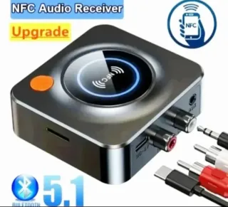 Receptor de Audio Bluetooth 5.1 HD para Coche o para Equipo Estéreo o TV Modelo C52. También para Altavoz y Auriculares Adaptador Inalámbrico para Música Estéreo. - También Recibe Audio por NFC Smart Wireless Receiver - Acepta TARJETA TF/SD - Conector de Audio RCA - Conector de Audio Jack 3.5mm Incluye: 1X Receptor de Audio Bluetooth 5.1 (Y NFC) 1x Cable de Carga USB 1X Cable RCA a Jack 3.5mm 1XJack 3.5mm TOTAI MENTF NIJFVO sin usar en su caia original.