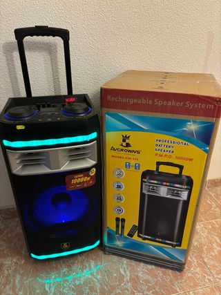 Espectacular altavoz Bluetooth ZGS8210, ideal para tus fiestas. Se encuentra en excelentes condiciones. - Dispone de luces LED multicolor. - Diseño elegante y moderno. - Dos altavoces de gran potencia.