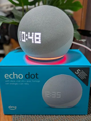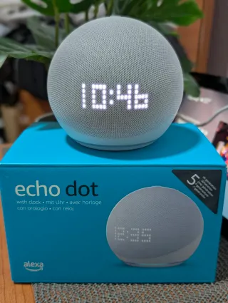 Echo Dot de 5ª generación con reloj en perfecto estado funcional y estético, como nuevo. ⚪ Color blanco. 📦 Se entrega con caja original, cargador original y manuales. Altavoz inteligente con Alexa integrada y pantalla LED para ver la hora, alarmas y temporizadores de un vistazo. Sonido mejorado con graves más profundos y mayor claridad. Ideal para rutinas, música y control de dispositivos del hogar inteligente. Conectividad WiFi y Bluetooth. Sin marcas, sin golpes. Uso mínimo. Palabras clave: Echo Dot 5ª generación con reloj, Alexa, Amazon Echo Dot, altavoz inteligente, smart speaker, reloj LED, WiFi, Bluetooth, como nuevo.