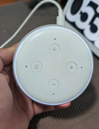 Amazon Echo Dot de 3ª generación en buen estado funcional y estético, funcionando perfectamente. ⚫ Color negro con soporte en color gris, ideal para colocarlo en pared, techo o superficie según el soporte. 🔌 Incluye cargador original. 📦 Sin caja. Altavoz inteligente con Alexa integrada, perfecto para escuchar música, radio, podcasts, controlar dispositivos del hogar inteligente, poner alarmas, temporizadores y mucho más usando solo la voz. Sonido nítido, conexión WiFi y Bluetooth, diseño compacto y muy práctico gracias al soporte incluido. Equipo cuidado, con leves señales normales de uso, pero en muy buen funcionamiento. ✨ ¡Listo