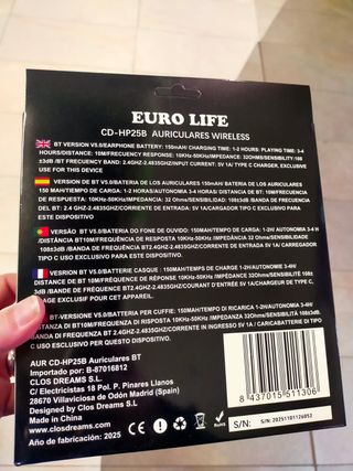 Auriculares Bluetooth 5.0 Euro Life Inalámbricos