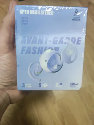 Auriculares inalámbricos con diseño abierto y estéreo. - Modelo: OWS 12 Crystal - Versión Bluetooth: 5.4 - Tiempo de llamada: 3 horas - Tiempo de reproducción de música: 5 horas - Tiempo de espera: 10 horas - Capacidad de la batería del estuche de carga: 200 mAh