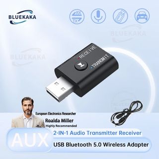 Transmisor y receptor de audio Bluetooth 5.0 2 en 1 con conector AUX de 3,5 mm, RCA, USB, adaptador inalámbrico estéreo para TV, coche, PC, altavoz y auriculares.