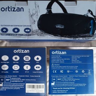 Altavoz Bluetooth portatil con un llamativo diseño de toro azul sobre fondo rojo. - funciona con Bluetooth y por usb, además tiene para microsd - funciona bien, pero no alcanza mucho volumen - Incluye una pequeña cinta para colgar. La marca no es la correcta