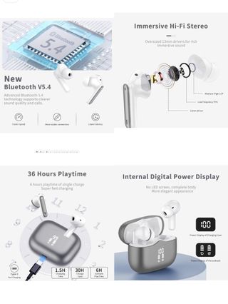Auriculares Bluetooth con tecnología V5.1 y doble micrófono para una comunicación clara. - Diseño ergonómico para un ajuste seguro. - Indicador de batería LED en el estuche de carga.caja 4
