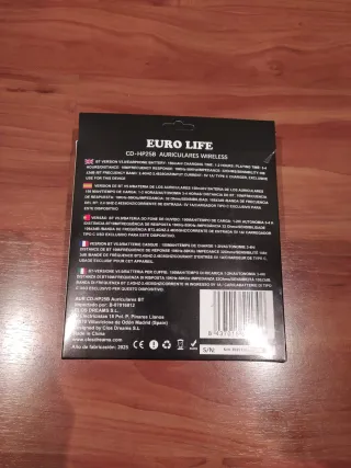 Auriculares inalámbricos EURO LIFE con tecnología Bluetooth 5.0. <Precio Negociable> - Conexión inalámbrica. - Ideal para escuchar música. - Permite realizar llamadas. - Batería recargable. (Tiempo de Carga 1-2 Horas) - Autonomía 3-4 Horas - Cargador Tipo C - Sin abrir