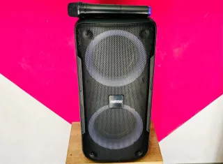 Este completo set incluye dos micrófonos inalámbricos que te permitirán vivir la experiencia del karaoke como una verdadera estrella. Equipado con efectos deslumbrantes de iluminación RGB, es perfecto para ambientar cualquier espacio y crear una atmósfera increíble para tus sesiones de karaoke. Podrás cantar tus canciones favoritas rodeado de luces, añadiendo un toque profesional a tu espectáculo. Tanto el altavoz como los micrófonos tienen incorporado botones que te permiten controlar sus funciones de manera sencilla: encenderlo, apagar lo, cambiar el efecto de luz o voz y más.