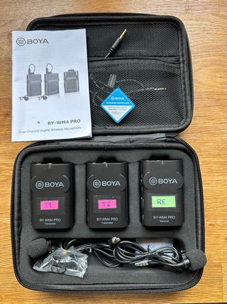 Sistema de micrófono inalambrico Boya BY-WM4 PRO TX+TX+RX Compact 2.4GHz Wireless,Lavalier Microphone for DSLR Camera Smartphones Tablet PCs. Sin utilizar, como nuevo