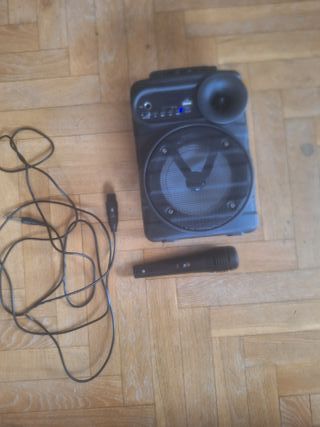 Parlante portátil con múltiples funciones. - Conectividad Bluetooth. - Incluye micrófono. - Radio FM y AM integrada. - Entrada para cable. -Buen sonido -Carga rapida -Con cargador