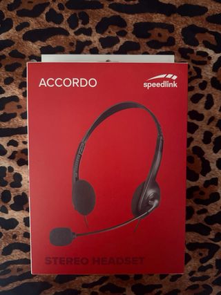 El producto en la imagen es un auricular estéreo Speedlink Accordo. Tipo de producto: Auricular con micrófono para comunicación y multimedia Compatibilidad: Generalmente compatible con PC/portátiles a través de conectores jack de 3,5 mm Características: Diseño ligero, diadema ajustable y micrófono flexible
