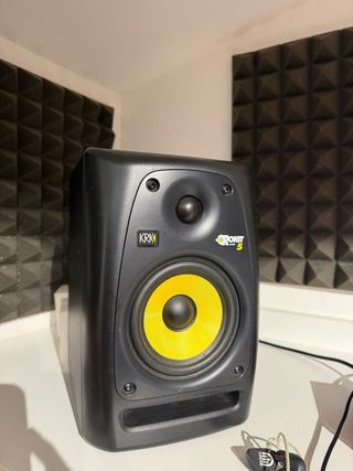 Configuración: 2 vías activa (bi-amplificada) • Woofer: 5” (o 5.25”) de fibra de aramida Kevlar® • Tweeter: 1” de fibra de aramida Kevlar® • Amplificación: Clase D, 55 W total (aprox. 30 W woofer + 25 W tweeter) • Respuesta en frecuencia: Típicamente 43 Hz - 40 kHz (varía según mediciones) • SPL máximo: Alrededor de 104-110 dB • Entradas: Combo balanced XLR/TRS • Características destacadas: • DSP con EQ gráfico de 25 presets (visualizado en pantalla LCD trasera) • App KRK Audio Tools para análisis de sala y ajuste • Puerto bass reflex frontal • Aislamiento acústico con pads de espuma