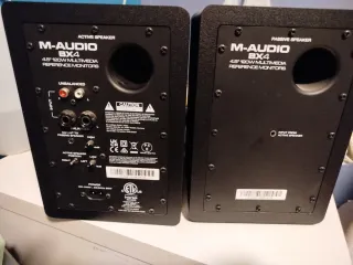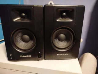 Par de monitores de estudio M-Audio BX4 en color negro. Ideales para producción musical y mezcla. - Diseño compacto y elegante. - Alguna marca de uso como se puede apreciar pero bien cuidados,son 4'5 pulgadas, prefiero entrega en mano,precio no negociable