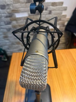 Pack completo de micrófono de condensador Rode NT1-A, el estándar de oro para estudios caseros y profesionales. 1. Micrófono Rode NT1-A: Famoso por su bajísimo nivel de ruido y calidez 2. Soporte suspensión (Araña) Rode, evita ruidos y vibraciones. 3. Filtro Antipop: elimina sonidos "plosivos" (golpes de aire al hablar). Bien cuidado, siempre usado con el filtro protector, manchas superficiales, pero el micro nunca se ha llevado un golpe. La rejilla y el cuerpo están perfectos; micro ideal para quien busca dar el salto a una calidad de audio profesional en podcasts, locución o música. Requiere alimentación Phantom (48V).