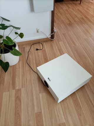 subwoofer de pared o suelo de la marca alemana Canton, blanco, en perfecto estado, ligeras marcas esteticas (ver fotos). tamaño muy pequeño, suena muy bien, dos vias: bass-reflex-system 7.5 inch aluminium driver 120 watt music power handling 43 x 15,5 x 41 cm (W x H x D) entrada por RCA o cable. regalo RCA en codo. precio en web Canton 399€ No negociable.