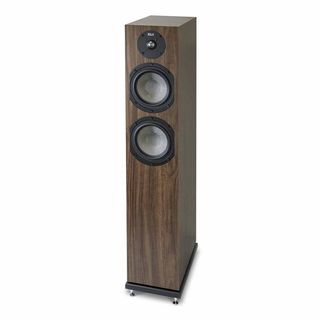 Altavoces de suelo Focal Aria con un diseño elegante y acabado en madera oscura. - Tweeter de cúpula invertida. - Woofers con cono sandwich de fibra de vidrio. - Puerto bass reflex frontal..