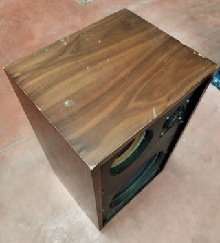 1 de 2 Altavoces B&W DM 14 Gabinete de madera de dos vias con tres altavoces Uno de ellos tiene sustituido el Twitter Tiempo sin uso guardado en caja Marcas y despectos esteticos en la madera Altavoces de suelo Gabinete cerrado Tweeter 26mm Woofers 150mm Impedancia 8 ohmios Proteccion contra daños y sobrecarga en los altavoces Medidas 567x256x295 mm -Se entrega con las rejillas de protección, una de ellas se sujeta regular. La venta se realiza por la compra de las dos unidades. Precio unidad """"Venta por separado por superar peso maximo de envio""""