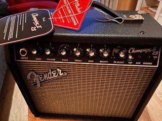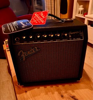 Amplificador de guitarra Fender Champion II 25 Comprado hace dos meses, y usado en casa un par de veces. Se vende con su embalaje original. - Controles: Input, Gain, Volume, Voice, Treble, Bass, Modify, FX Select, Tap, Aux, Phones. - Logo Fender en la rejilla. Con 25 vatios de potencia, el ampli ofrece tonos limpios y overdrive de Fender. Incorpora una amplia gama de efectos: reverb, delay/echo, chorus, tremolo entre otros. El botón TAP permite sincronizar el tempo del delay al ritmo deseado.