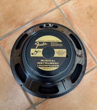 Altavoz Fender de 12” pulgadas sacado de un Blues Junior original. Ya ablandado y con un sonido espectacular. - Fabricado por Eminence Speaker Corporation en Kentucky. - Hecho en EE. UU. - Sin desperfectos, muy cuidado.