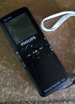 Grabadora digital PHILIPS mod Voicetracer 620. Incluye un cómodo micrófono. Pantalla extra grande. Conexión para micrófono. USB 2.0 de alta velocidad. LCD 3.5 cm 1.5 pulg. Funciona con pilas AAA.