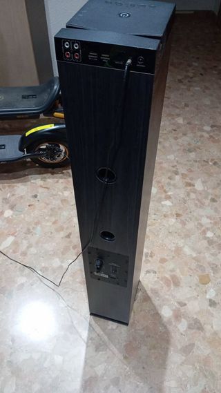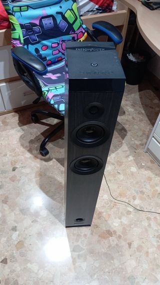 Altavoz grande de la marca Energy Sistem en color negro. - Diseño vertical. - Parte superior con controles táctiles y logo. - Doble altavoz en la parte frontal.
