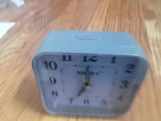 Despertador con un diseño clásico y funcional. - Esfera blanca con números grandes. - Agujas de hora, minuto y segundero. - Mecanismo de cuarzo.