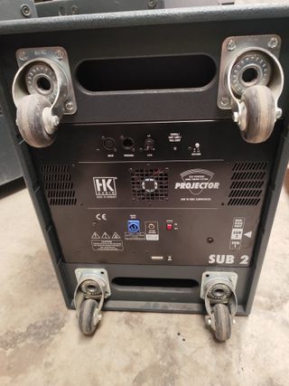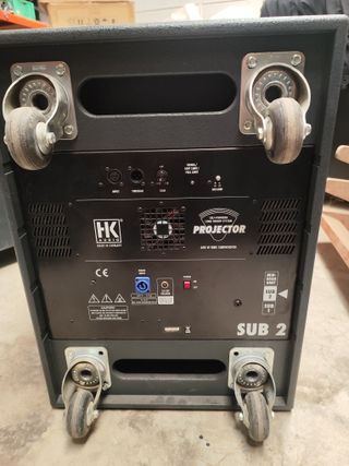 Autoamplificado HK Audio Projector 3 CAJAS POR LADO 2 SUB + 1 MID/HIG POR LADO precio de las 6 cjas procedente de instalacion fija de hotel - Potencia de 600 W RMS. - Fabricado en Alemania. - Ruedas para facilitar el transporte.