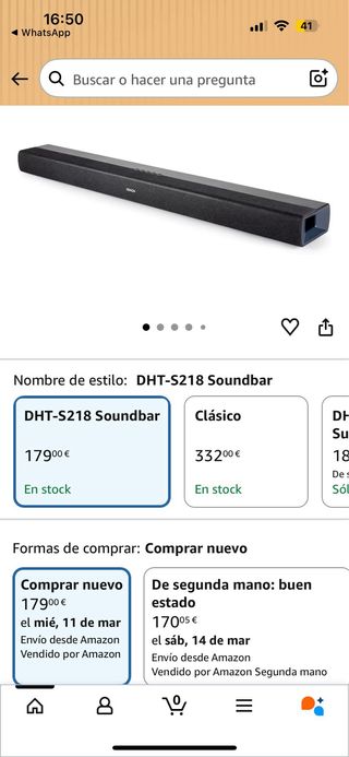 Barra de sonido Denon en color negro. - Diseño elegante. - Ideal para mejorar la experiencia de audio de tu televisor. - Mando a distancia para su control. - Precio de 180€ nueva en Amazon y 170€ de 2 mano. - Características en 3 foto.