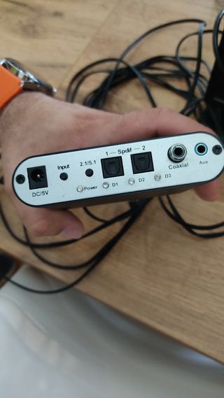 vendo home cinema en uso, el mismo contiene un altavoz para graves y 5 altavoces( dos centrales frontales, dos centrales laterales traseros y uno central) lo vendo por no usar. Algunos cables están acortados ya que lo usaba. on instalación en casa de home cinema. comprobar en la foto los formatos que lee. también vale para escuchar CD o radio.