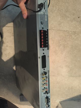 2 altavoces frontales, 1 central, 1 subwoffer y 2 traseros inalámbricos por infrarrojos. Todo funciona perfectamente. Lector de CD y DVD. conexión por HDMI, fibra óptica y euroconector. Se incluye manual Solo recogida en mano.