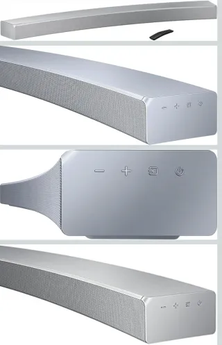 Barra de sonido curva con un elegante acabado en color plata. - Diseño curvo. - Controles táctiles integrados en la parte superior.