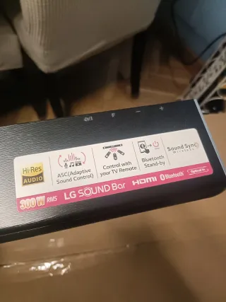 Barra de sonido LG con alta calidad de audio. - La vendo por haber cambiado a una de alta gama - Potencia de 300W RMS. - Certificación Hi-Res Audio. - Control con mando a distancia de TV. - Conectividad Bluetooth y Sound Sync Wireless. - Entradas HDMI y Optical In. - Mando a distancia y cables incluidos - Perfecto estado de funcionamiento
