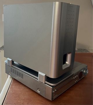 Equipo de sonido Philips con subwoofer y reproductor de DVD. Se vende por falta de uso. - Subwoofer plateado y negro. - Reproductor de DVD plateado. - Incluye mando a distancia.