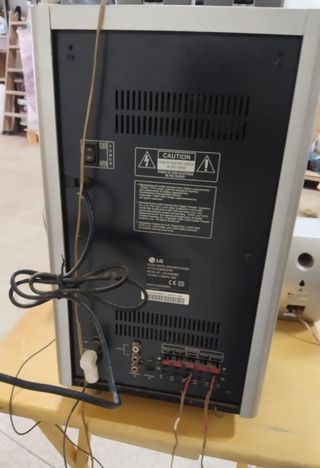 Sistema de sonido Home Cinema LG. - Altavoz central. - Dos altavoces satélite. - Subwoofer. - Dos altavoces frontales.