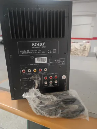 Sistema de cine en casa Sogo. - Modelo SS-10100 SPK DVD. - Fuente de alimentación: AC230V - 50Hz. - Conexiones de audio: Salida y entrada. - Interruptor de encendido/apagado.