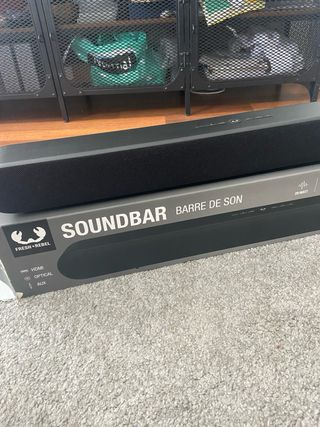 Barra de sonido para TV de la marca Fresh Rebel. Diseño elegante en color negro. Usada 2 veces contadas - Potencia de 28 vatios. - Conexión Bluetooth. - Entrada HDMI. - Entrada óptica. - Entrada auxiliar (AUX). - Control remoto incluido.