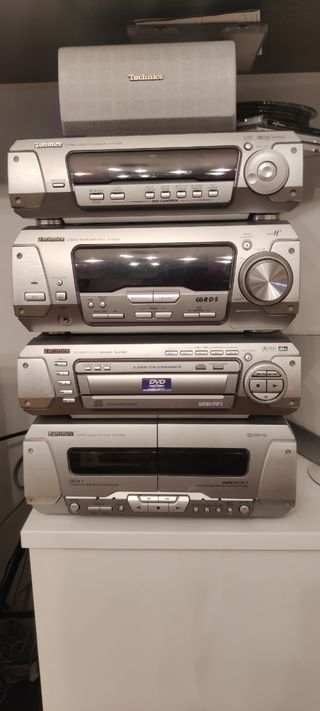 Equipo completo Home Cinema DVD y equipo de música en perfecto estado Dos pletinas de cassette Auto reverse, lector CD / DVD con cargador para 5 discos, dos altavoces grandes, uno central y dos más pequeños laterales. Con cableado, mando a distancia e incluso manual de instrucciones. 200€ negociables.