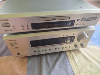 Sistema de cine en casa Onkyo en buen estado. Incluye un reproductor de DVD, un amplificador y un sistema de altavoces con subwoofer. Funciona todo correctamente. - Reproductor de DVD Onkyo (golpe en carcasa) DV-S555 - Amplificador Onkyo (con golpe en carcasa) TX-DS595 - Sistema de altavoces KEF 5.1 (HTS2001) con subwoofer (PSW2000). Negociable