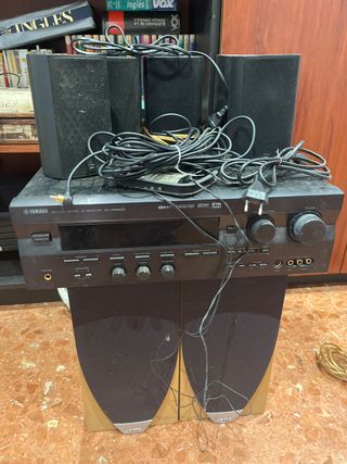 Equipo de sonido Yamaha en buen estado con gran calidad de sonido. Incluye 5 altavoces Satélite, dos Frontales, un subwoofer y un receptor AV. Además de incluir todo el conjunto de cableado para su funcionamiento. - Receptor AV Yamaha RX-V596RDS. - 2 altavoces grandes Frontales Jamo. - 5 altavoces Satélite Jamo. -1 Subwoofer Jamo SW1008