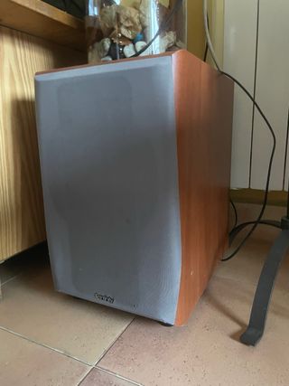 Set de altavoces Infinity Primus HCS SAT por 75€ más. El subwoofer está un poco cascado, pero nada que no tenga arreglo.