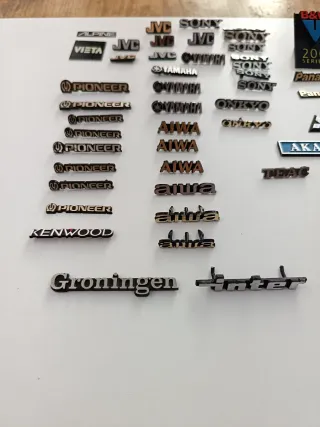 Anagramas de diferentes marcas de equipos Hi-Fi, ideales para coleccionistas y para restaurar equipos,en buen estado, preguntar . Precio DESDE 5€ - Fabricados en metal con acabados en oro y plata. - Incluye marcas como Aiwa, Akai, Alpine, Bose, Harman Kardon, Infinity, JVC, Kenwood, Mitsubishi, Onkyo, Panasonic, Pioneer, Sanyo, Sherwood, Sony, Technics, Toshiba, Vieta y Yamaha,Marantz,Nad, Denon.