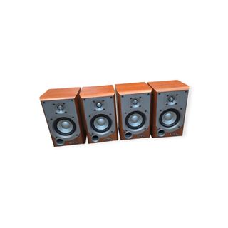 5 altavoces de la marca Infinity en acabado marrón. - Conexiones traseras para cableado. - Diseño compacto.