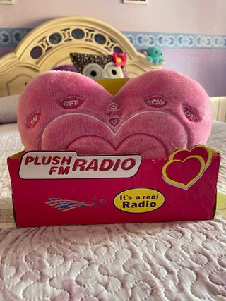 Radio cojín corazón peluche. Funciona perfectamente y se oye muy bien. Ideal para regalo.